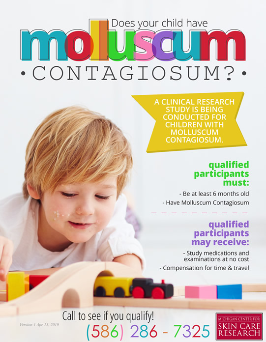 Skin Care Research is testing an investigative treatment for molluscum contagiosum. To qualify for this study, you or your child must be at least six months of age, and agree to twelve weeks of participation.